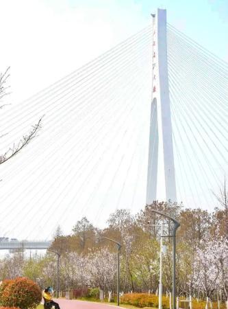 從二七長江大橋到建設五路的堤頂,粉白如煙的櫻花花枝搖曳,讓青山江灘成為賞櫻打卡的好去處。