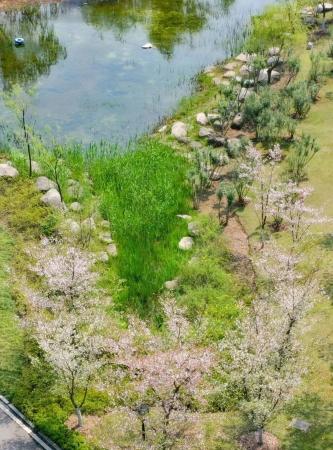 硬核公園裡的櫻花浪漫,共有櫻花近200棵,主要是中櫻和晚櫻,分佈在西廣場和公園二期。